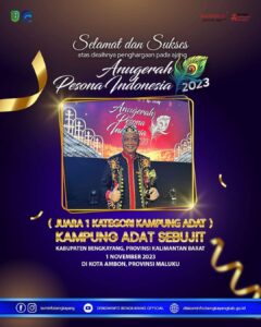 Kampung Adat Sebujit atas peraihan Juara 1 Kategori Kampung Adat di ajang Anugerah Pesona Indonesia 2023